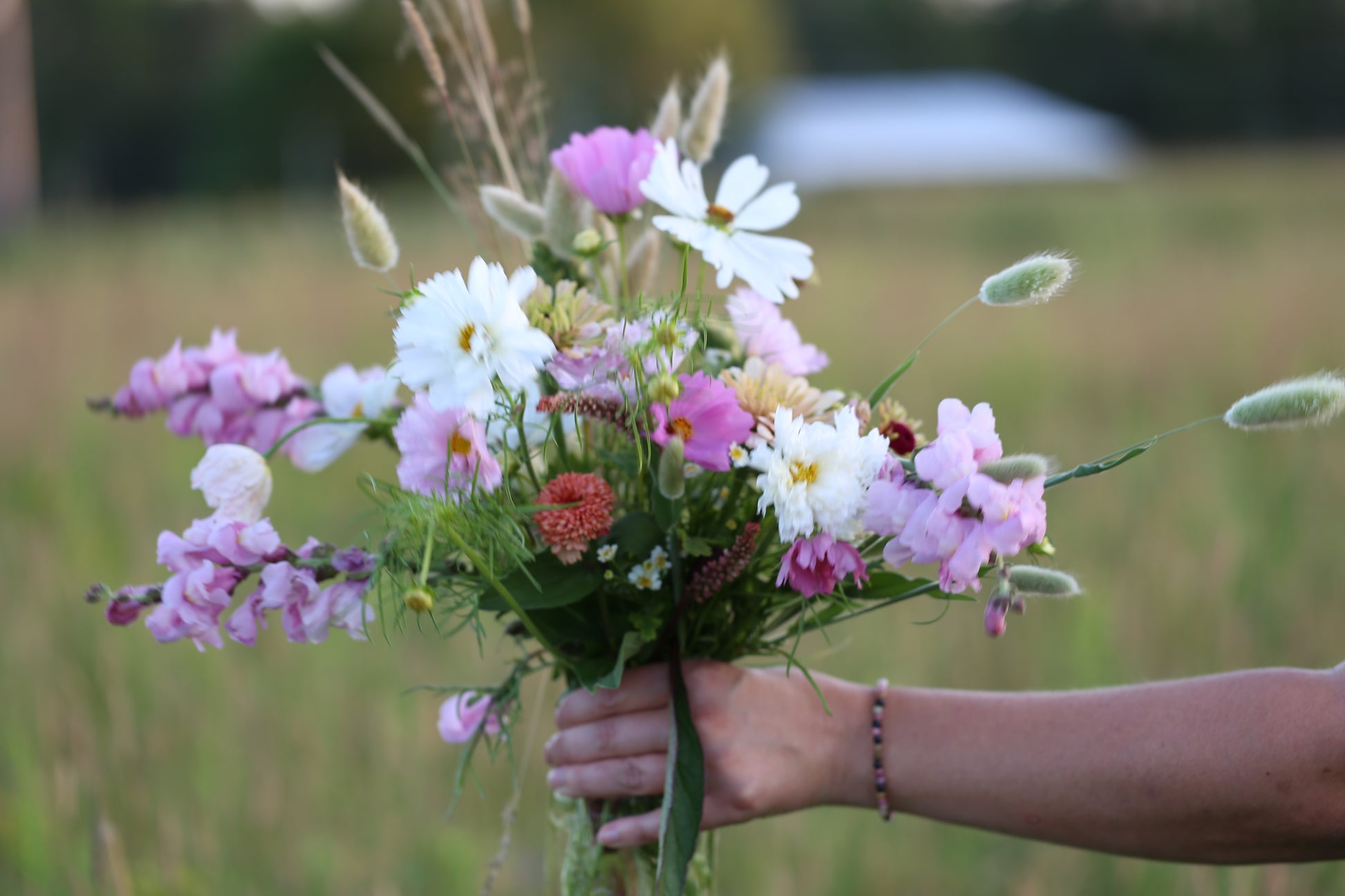 Bouquets are picked once per week, beginning when our fields reach peak bloom — typically mid-July. Every bouquet is harvested by hand from our Slate River fields and wrapped in our signature Firefly style.